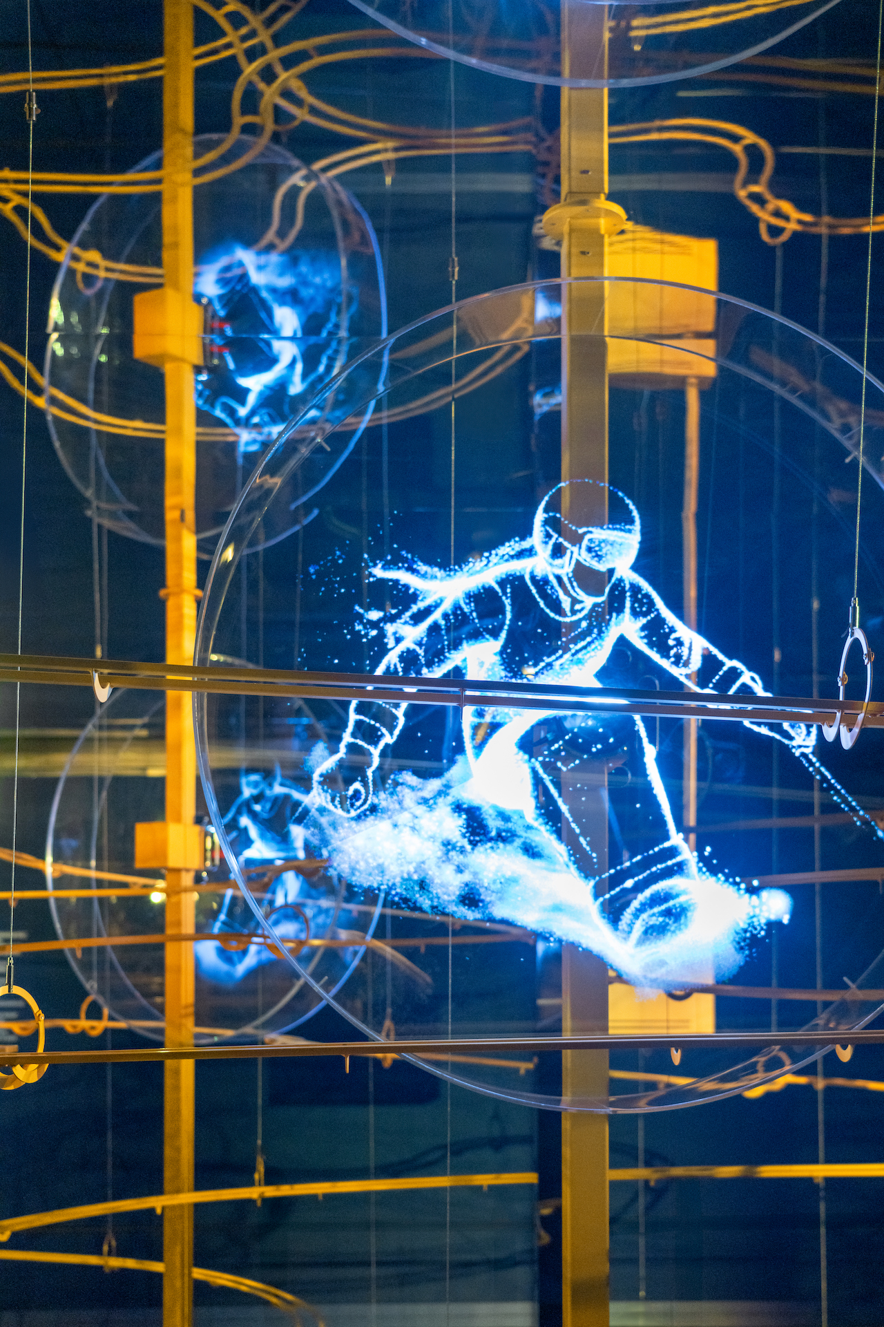 Inside Casa Esselunga, the itinerary unfolds through immersive environments. In the first room, the “Precamera,” an emotional video introduces the experience in which visitors will take center stage. The journey continues with the “Circuito Meraviglioso,” a kinetic machine that portrays excellence as an ongoing process, achievable only when fueled by values such as innovation, belonging, integrity and passion, as well as by people’s participation. Along the “tracks” of the circuit, holographic projections of winter sports disciplines further enhance audience engagement.