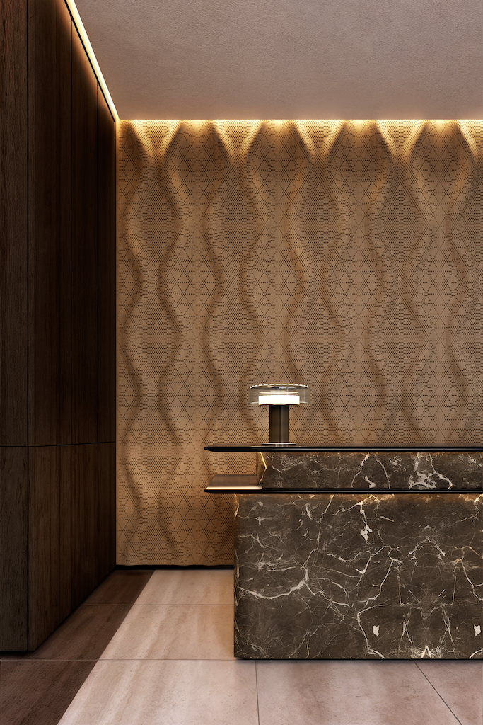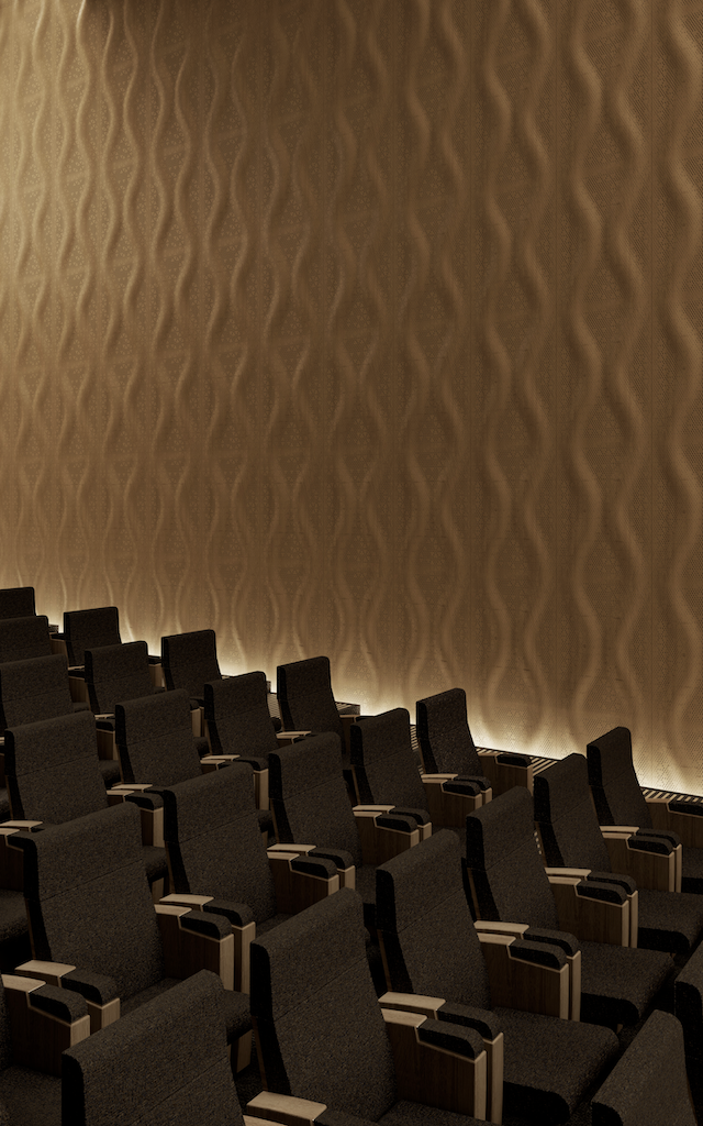 Thanks to a sophisticated graphic coding system, the Najdi patterns not only enhance spaces with a refined visual language, but have also been engineered to absorb and reflect specific acoustic frequencies, ensuring a superior listening experience in theaters, concert halls, cinemas, and conference spaces.
