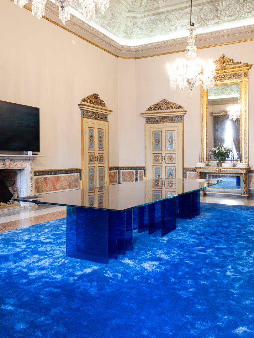 For this occasion, in designing the Samsung House, we brought the collaboration between @gioforma and @driade_official to a new level with STRACTA — a minimal glass table conceived to embody layers and shades of blue, the core chromatic identity of the event.